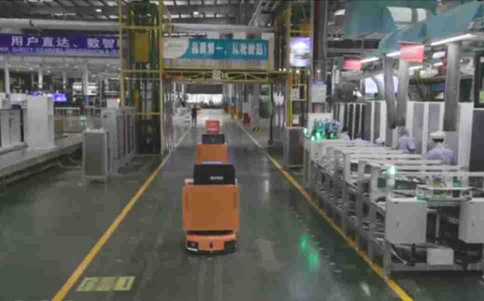 为车载冰箱物流配送打造的智能解决方案,,,包含产中物流通过潜伏举升AMR搬运至线边,,产后成品物流智能仓储,,,流程包含产中物流智能齐套入库,,,,线边安灯叫料AMR智能配送至线边,,,成品入库、、、、出库,,,,通过无人堆高车机器人,,,,智能仓储管理替代人工作业管理,,,实现更高存储、、更高效率、、、、更具柔性化的解决方案。。